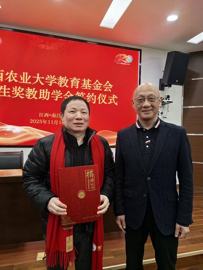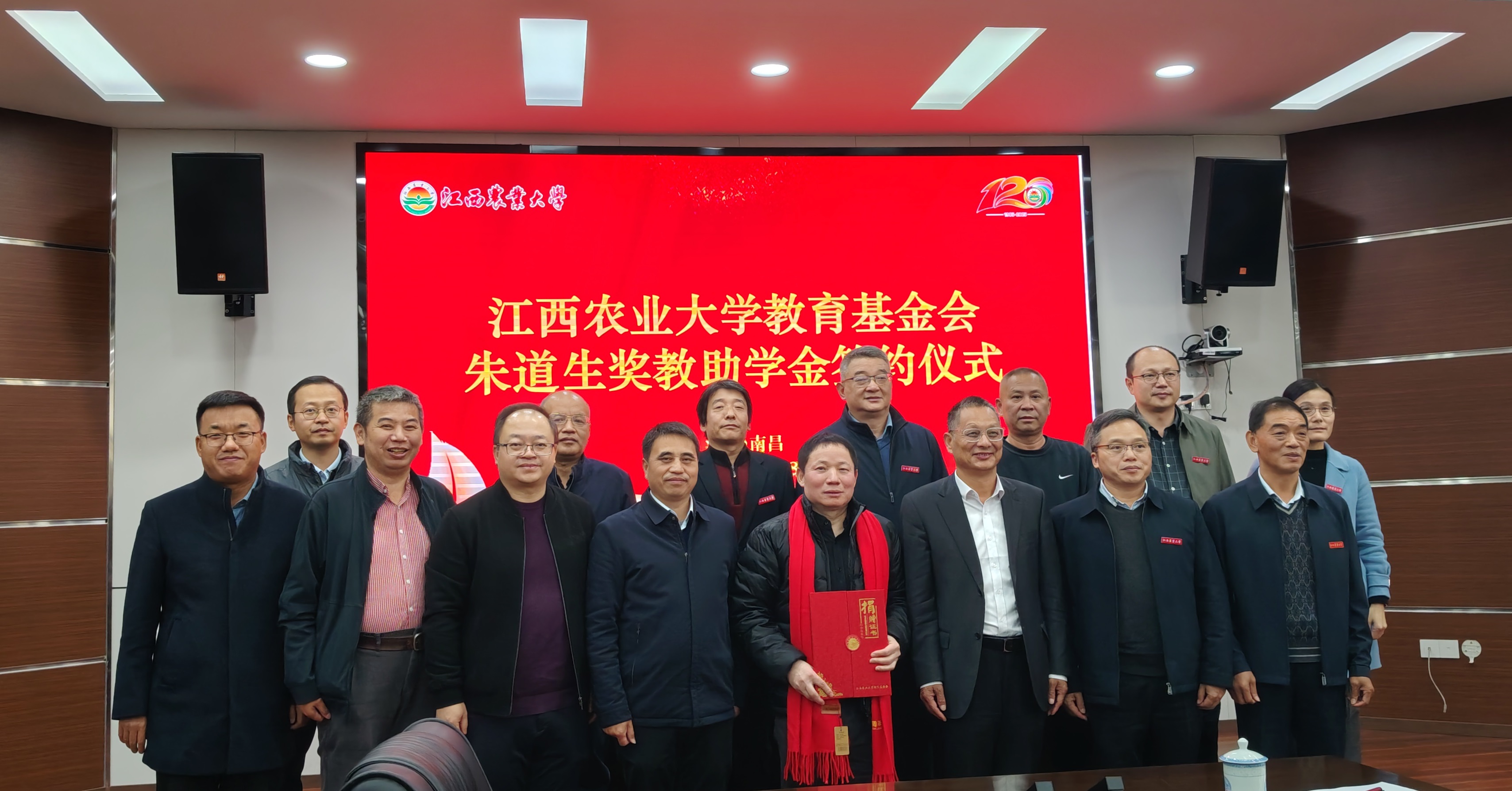 在喜迎建校120周年华诞之际,11月18日,学校举行了“朱道生奖教助学金”捐赠签约仪式,我院1989级植物保护专业朱卫平、1990级植物保护专业王群夫妇捐资300万元用于奖励和资助在教学科研、创新创业等方面取得优异成绩的教师及学生。校党委书记黄路生院士、副校长曾勇军、原副校长贺浩华,学校相关职能部门、农学院主要负责人及师生代表50余人参加了捐赠仪式,副校长张高亮主持仪式。